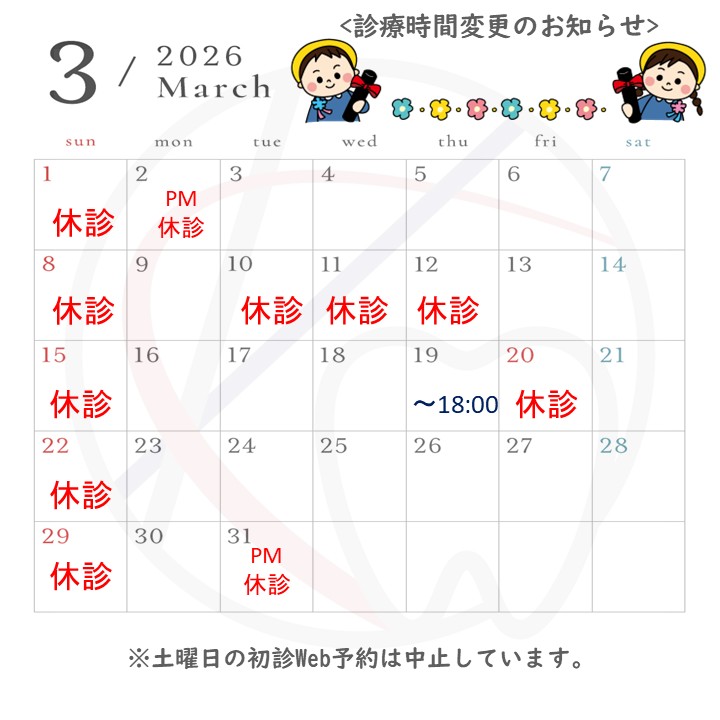 2026年3月診療時間変更のお知らせ